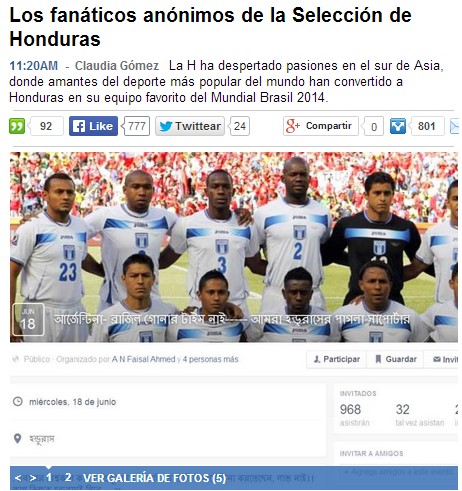 ব্রাজিল আর্জেন্টিনার দলাদলিতে যুগে যুগে হতাহত হয়েছে কতশতজন। কি লাভ এসব করে? ফুটবল মজার খেলা, উপভোগের খেলা। তাই এবারে দলাদলি ছেড়ে সবাই একটা বেয়াড়া প্লান করে বসলো, এবার আমরা হন্ডুরাসের সাপোর্টার। দেখি কপালে কি লেখা থাকে। খেলাতো খেলাই তাইনা। বানানো হলো উই আর ক্রেজি ফ্যান অব হন্ডুরাস ফুটবল টিম ফ্রম বাংলাদেশ নামের একটি ইভেন্ট। এরপর বাকীটা ইতিহাস।